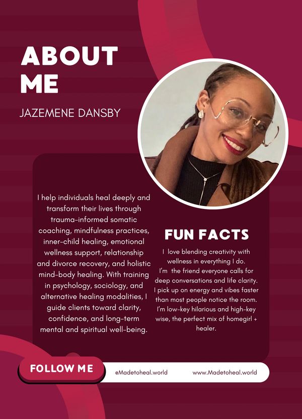 Jazemene is a force in the world of healing—a woman who didn’t just study transformation, she embodied it. Long before she became a highly certified life coach and wellness practitioner, she was her own first client… navigating life with a rare blend of intuition, intellect, and spiritual depth that she couldn’t yet put into words. Over time, she realized that her ability to see people—their wounds, their potential, and the truth they hide from themselves—wasn’t random. It was a calling.